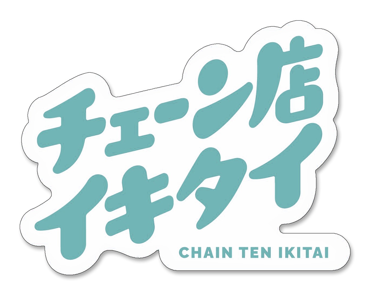 思わずチェーン店に行きたくなるステッカー「チェーン店イキタイ」ミント色です。
